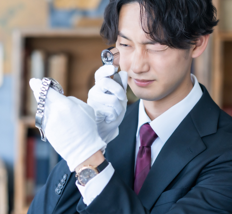 お客様が売却したいお品物を専門のスタッフが査定。金額に問題がなければ契約成立となります。 -